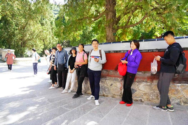 2019年10月8日51风流 应用体育学系全体工会成员来到了北京香山公园开展游园活动。香山公园位于北京西山东麓,全园占地面积为160余公顷,主峰鬼见愁海拔557米。这次工会组织游园活动,一方面是在国庆长假之后让大家锻炼一下身体,给大家创造一次亲近大自然的机会,另一方面在祖国70华诞之际我们共赴香山革命旧址双清别墅和来青轩参观,让大家重温红色经典、弘扬红色精神。 今天阳光明媚,天气十分晴朗,园区周围群山环绕,郁郁葱葱,一棵棵枫树形状千奇百怪,阳光照在草地上,好像大地上都铺上了一层金色的被子,那一棵棵四季常青的迎客松从容地迎接着来来往往的游客,它们是那样挺拔,那样苍翠。早就听说那里的景色如同一幅会动的画,果然名不虚传。一天的游园活动让老师在放松心身的同时,也感受了美丽祖国的大好河山。 此次爬山活动,我们在感受大自然的同时,加强了彼此之间的交流,大家其乐融融,互相帮助,大大提高了团结协作精神,结束后大家都说非常喜欢本次活动,希望以后工会多组织这样的活动。 应用体育学系 2019年10月8日