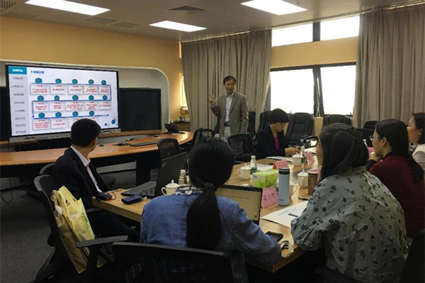 在交流座谈会上,汕头大学医学院教务处陈海滨处长、张忠芳副处长为考察团介绍了汕头大学的建校历史和医学院的成立由来、机构设置,及近年来的教学改革成果。陈海滨处长着重讲解了汕大医学院的模块整合体系。汕大医学院自2002年开始,对所有课程进行了系统性的整合。整合之后的课程归入四大模块:(1)公共基础课程,包括国家规定的本科生必修公共课科目;(2)人文社会科学课程,包括特色人文课程《健康与社会》、卫生法学、思政课程,以及后来加入的医学人文“HEART”模块;(3)临床核心课程,主要是临床必修科目;(4)系统模块,以人体系统为划分依据,如呼吸系统、消化系统等。此外还有贯穿整个本科过程的临床技能模块,包括临床见习,角色扮演类的沟通技能、团队协作训练,终身学习能力培养等方面。课程整合得到了全校师生的认可,体现出了学练结合、德业兼修的特点。