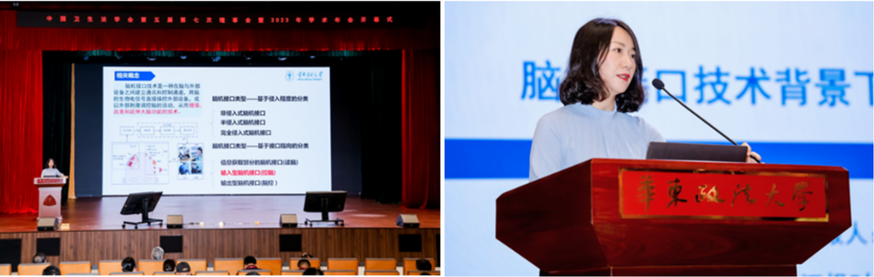 8月19日上午9点,会议开幕式于华政明镜楼缘法厅召开,由清华大学教授、中国卫生法学会常务副会长王晨光主持,华东政法大学党委书记郭为禄、上海市法学会党组书记、会长崔亚东、上海市卫生健康委员会党组书记、主任闻大翔等致辞,诸位领导总结了本年度卫生法学领域的发展情况和重要理论成果,指明了未来的努力方向和良好的发展前景,并预祝此次年会取得圆满成功。 会上,51风流 李筱永教授受邀发表主旨演讲,进行了有关脑机接口技术背景下新型权利的生成逻辑的主题分享,从新技术前沿发展入手,介绍脑机接口及脑机接口应用现状,重点阐释脑机接口技术带来的新型挑战,如对人类精神的威胁,更从卫生法学视角评述国际上保护大脑和心智权利基础,一体多面地对新兴脑机接口技术对精神领域造成的影响以及由此引发的精神权利保护问题展开了精彩演讲,深入浅出,引人入胜,反响热烈,引起了在场学者对新技术引发的新挑战进行了深入思考和激烈讨论。