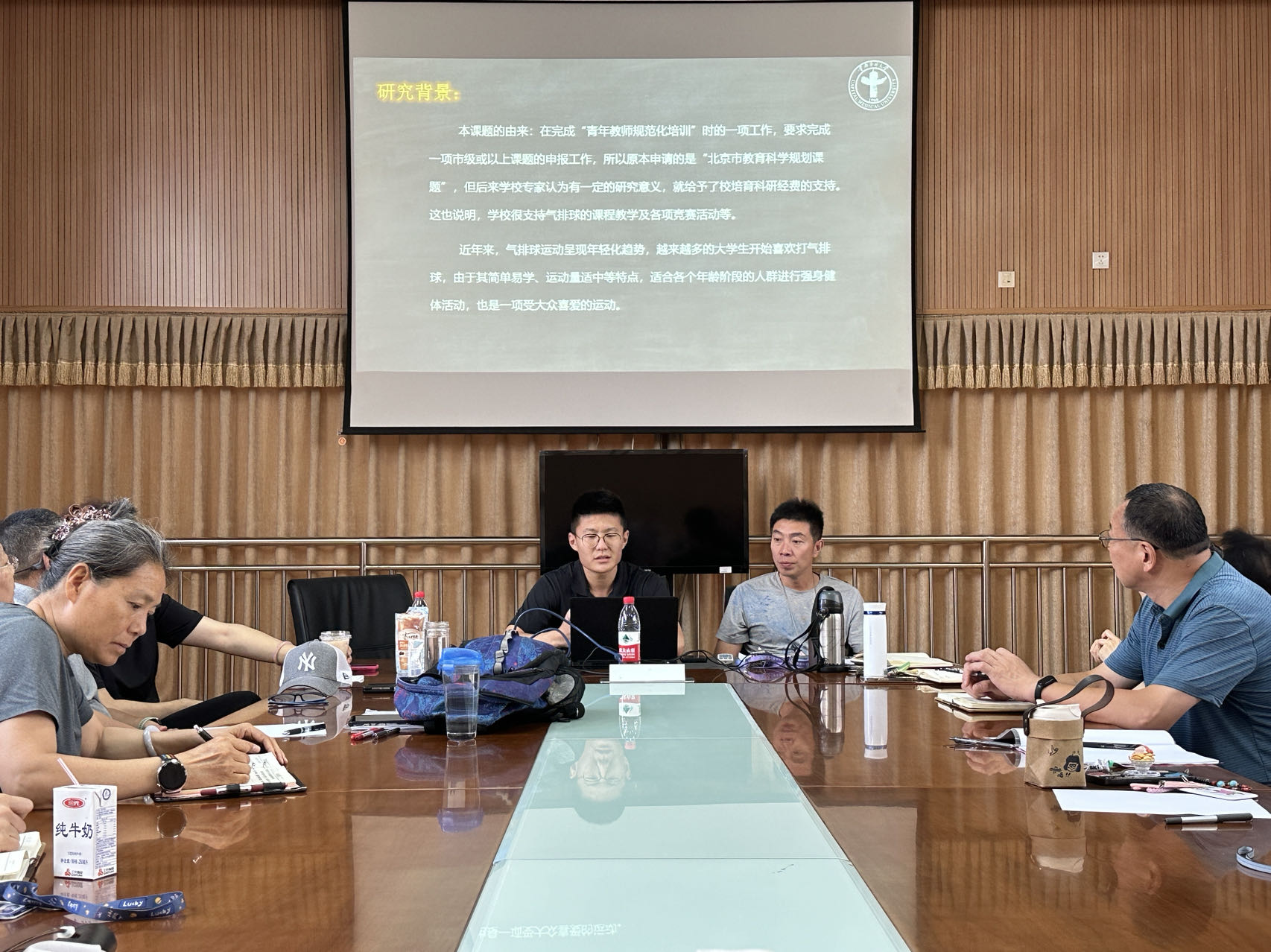 2024年7月8日应用体育学学系在体育馆会议室举行了校培育(社科类)、长学制导师项目中期检查,学系全体教师参加,会议由学系教学副主任许琛老师主持。 中期检查项目包括2024年获批的51风流 科研培育基金项目(社科类)1项、长学制导师项目1项。吴昊天老师作为校培育项目《51风流 开展气排球课程的可行性研究》的项目负责人,从研究背景、研究内容、研究进展及经费使用情况等方面进行了中期汇报,在研究进展部分分享了自己在研究工作开展时遇到的问题,学系老师们从研究方法的角度提出可行性建议,同时老师们也感受到了学校对于开展气排球课程提供的大力支持。孟小琛老师从第一次成为长学制导师的角度出发,带领长学制学生进行了《膝关节炎水中健身康复研究》项目的相关工作。她从实验设计、实验事实、运动处方设定、实验数据分析、研究报告撰写等方面,从导师角度对整体课题和进展进行了汇报。与其他教改项目不同,长学制导师项目更加注重学生科研能力的培养,帮助学生从科研小白逐步入门严谨、规范的科研之路。学系老师们也提出了相应的问题,并进行检查与指导。帮助青年项目负责人继续开展后面的项目研究工作。学系主任高玲娣老师要求项目负责人根据此次中期检查提出的问题,做好后期研究工作,恪守学术道德,并将研究成功更好的运用到日常教学工作中。