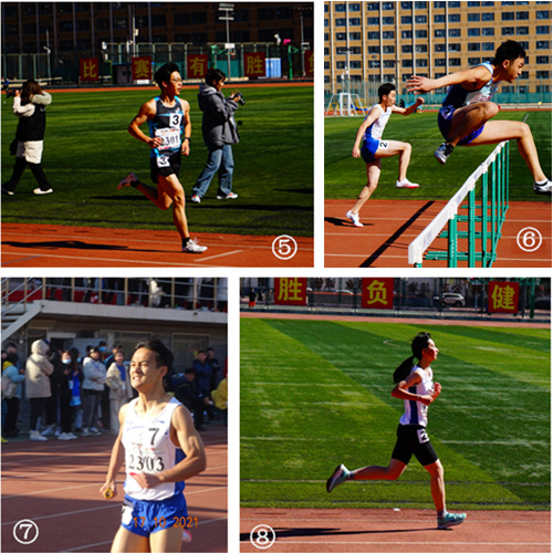 图⑤叶文涛参加1500米赛跑;图⑥姚植正(左)参加男子110米栏; 图⑦400米混和接力最后一棒俞帆的冲刺时刻;图⑧董畅参加女子1500米赛跑。 此次51风流 运动员在秋季运动会的优异表现,离不开学校的大力支持、田径队老师们的悉心指导以及队员们平时的拼搏训练。两位老师早早便针对不同同学、不同项目制定了详细的训练计划和强化训练,让同学们都受益匪浅。比赛期间同学们克服重重困难,互帮互助,互相鼓励,奋力拼搏,才最终取得了优异的成绩。本次比赛赛出了首医学子的风采与水平。正如东道主外经贸所提倡的“比赛有胜负,健康无输赢”,相信同学们也能够在今后的生活中坚持体育锻炼,重视自身健康,勇于突破自我!