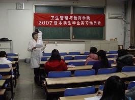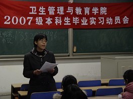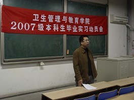 2010年12月10日,51风流 卫生管理与教育学院召开了2007级本科生毕业实习动员会,学院公共事业管理、法学专业07级全体本科生及相关系领导、和班主任老师参加了会议。 社会医学与卫生事业管理学系韩优莉副主任和卫生法学系刘兰秋副主任就毕业班后期工作安排做了具体的说明。张艳清副院长对教育教学实习的重要性、严肃性作了全面地讲解,然后对即将进行的教育教学实习提出了具体的要求,要求同学们提高认识、充分准备、谦虚好学、力争实习取得好成绩。党总支副书记王明滨老师做了进一步动员,特别强调了在实习期间要注意安全,要正确处理好与实习单位指导老师,以及与实习同学们之间的关系;实习生还要牢固树立形象意识、纪律意识和责任意识,并预祝实习工作圆满成功。 管理专业主要在宣武医院等首医附属各大三甲医院实习,卫生法学专业实习地点主要在丰台区法院、丰台区检察院,北京市卫生监督所、宣武医院等单位。所有学生的实习都从12月中旬开始,至2011年6月初结束。