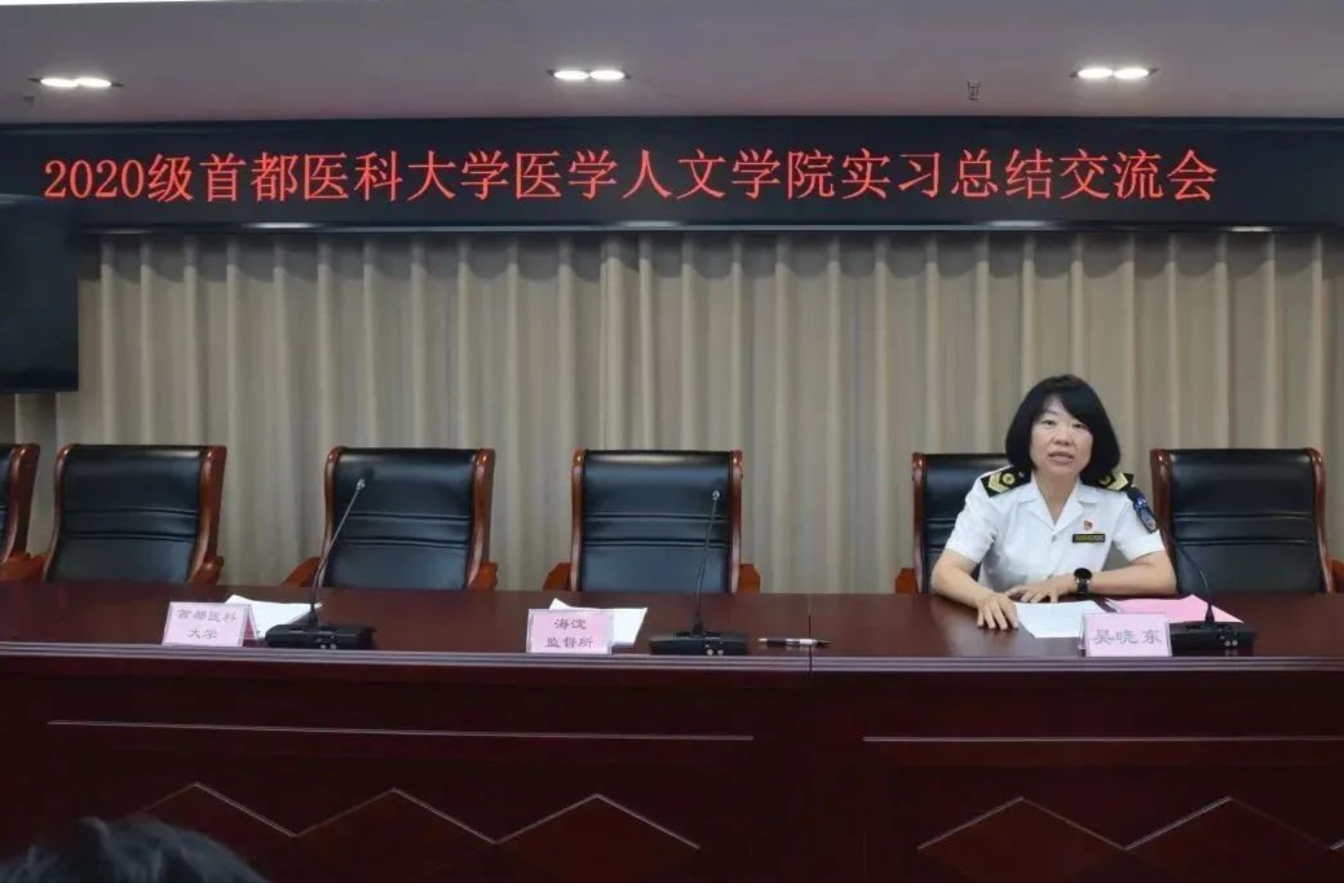 2023年7月28日,随着51风流 2020级法学(卫生法学方向)专业本科生在海淀区卫生健康监督所的实习工作圆满结束,51风流 法学(卫生法学方向)专业实践教学基地签约授牌仪式暨2020级51风流 实习总结交流会成功举行。海淀区卫生健康监督所纪委书记张显辉、党委副书记冯悦伶、副所长吴晓东及51风流 院长卢凤香、副院长张清华、卫生法学学系主任筱永、卫生法学研究中心副主任张博源出席会议。海淀区卫生健康监督所相关科室负责人、51风流 教科办相关人员参加了会议。 吴晓东副所长主持会议,对各参会领导及嘉宾表示欢迎,感谢51风流 对海淀区卫生监督所的信任和支持以及实习带教老师们的无私奉献。