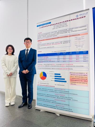 裴若童、杜雨涵获得本科生组一等奖 在壁报展示环节,由寇楠楠老师指导的2024级硕士研究生朱亭潞与2023级硕士研究生闫佳佳撰写的题为“基于责任的老年人电子健康素养的伦理探析”的论文、由彭迎春老师指导的2023级硕士生张艺耀和2024级硕士生王润莹的论文“人工智能在医疗领域的应用及其对医师职业精神的影响探析”以及由孙咏莉老师指导的本科生团队(王木子、程若茜等19人)撰写的论文“中医治疗抑郁症对医师职业精神教育的启示”,均得到了专家评委的认可,引发了与会人员的热烈讨论。