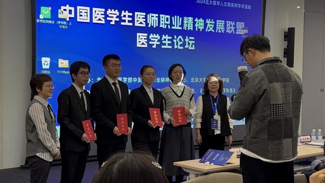 张艺耀、王润莹获奖证书 在第十七届医师职业精神研讨会学生论坛中,医学伦理与医学史学系2023级硕士研究生张艺耀担任此次论坛的主持人。