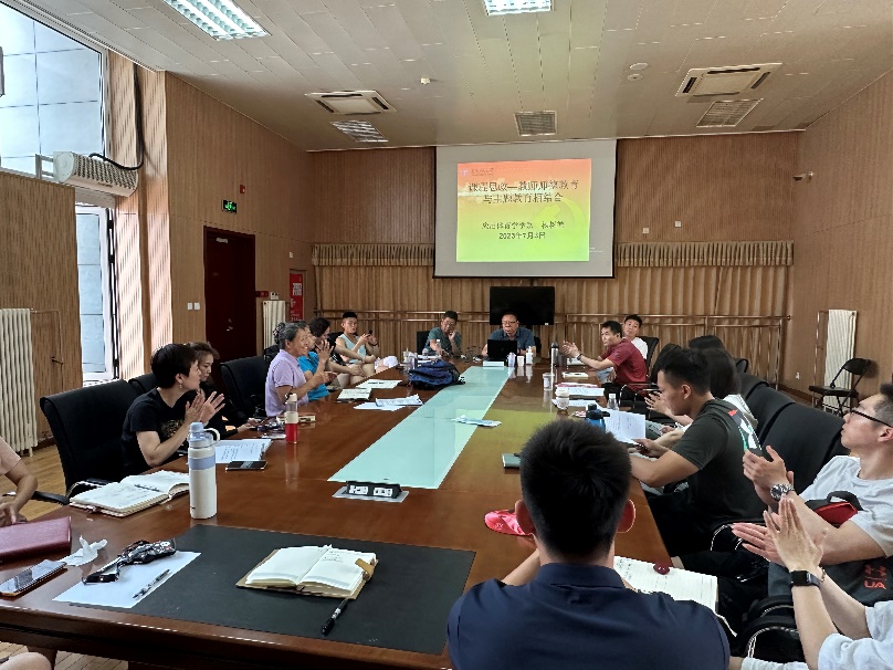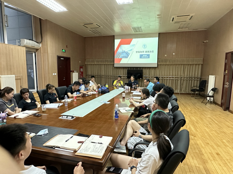 2023年6月14日-7月5日期间,每周三举办一次体育课程思政教师师德系列学习活动,应用体育学学系课程思政教育活动分为教师系列与学生系列两部分。本次教师系列活动主要针对体育教师、教辅人员及器材库管老师,由学系主任、书记、教学副主任及科研群体副主任四位老师进行主题教育活动,分别以《学高为师,德高为范》、《课程思政——教师师德教育与主题教育相结合》、《做好课堂常规,上优质体育课》及《提高教练员职业素养——为党育人》为题,进行体育课程思政师德教育活动。 体育教师承载着为学生传授体育知识、技术和技能,同时增强学生身体素质,培养学生坚韧的意志品质的重任。以体育人离不开老师的言传身教,更需要体育老师的以身作则,无论是师德师风教育、课堂常规学习、教学风险评估、还是教练员职业素养等,都是我们作为体育教师必须要熟记于心的重要课程思政师德教育内容。只有在细微之中,方能见教师本色,把握好思政师德教育主线,才能在讲台之上、田径场上、游泳馆里或是体育馆里尽显大爱情怀。保持体育教师的本心与热爱,给予学生热情、热爱与阳光,让体育运动的光芒不断的照耀医学生的求学之路。