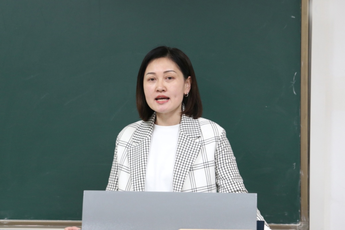 学院党总支书记王君致辞 在20分钟的现场演示环节中,选手们围绕51风流 人才培养目标,结合各自的专业素养和学科特点,融汇不同教学方法,注重与学生评委交流互动,理论教学与实践讲解相辅相成,恰当应用现代化教学手段,在传授专业知识的同时,也将课程思政春风化雨般融入法学的严谨、医学英语的规范和体育的活力中,展现出精彩纷呈的多样化课堂教学。
