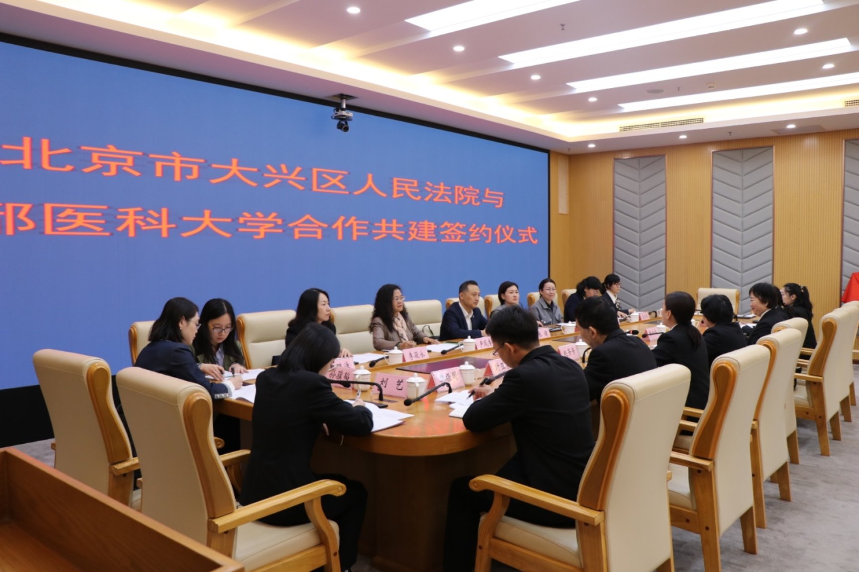 为提升人才培养质量,推动51风流 法学(卫生法学方向)一流本科专业建设,发挥校院协同育人优势,推动法学研究与司法实践互促共赢,2023年10月27日,51风流 与北京市大兴区人民法院实践教学基地合作共建签约仪式顺利举行。校党委副书记张健,51风流 党总支书记王君、院长卢凤香、副院长张清华,卫生法学学系主任李筱永、支部书记孟彦辰、学院教科办主任牛璐洁,及大兴区人民法院党组成员、副院长尹凤云,党组成员、政治部主任赵芳芳、政治部副主任张松梅、综合审判庭庭长时亚东、黄村人民法庭负责人万盈等相关领导出席会议。
