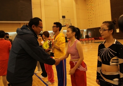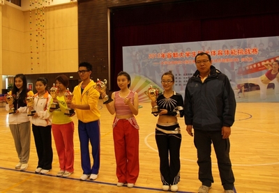 比赛中51风流 健美操队队员激情活力的表演,动感活泼的表现力,准确熟练的动作,以及顽强拼搏的精神深深的感染着在场所有观众和评委老师。在教练员许琛老师的带领和所有队员的努力下,最终荣获了北京市大学生体质健康测试赛一等奖,热力操比赛三等奖和团体总分三等奖的好成绩。51风流 应用体育学系杨树堃书记作为大赛特邀官员,还为获得热力操比赛二等奖的队伍颁发了奖杯。