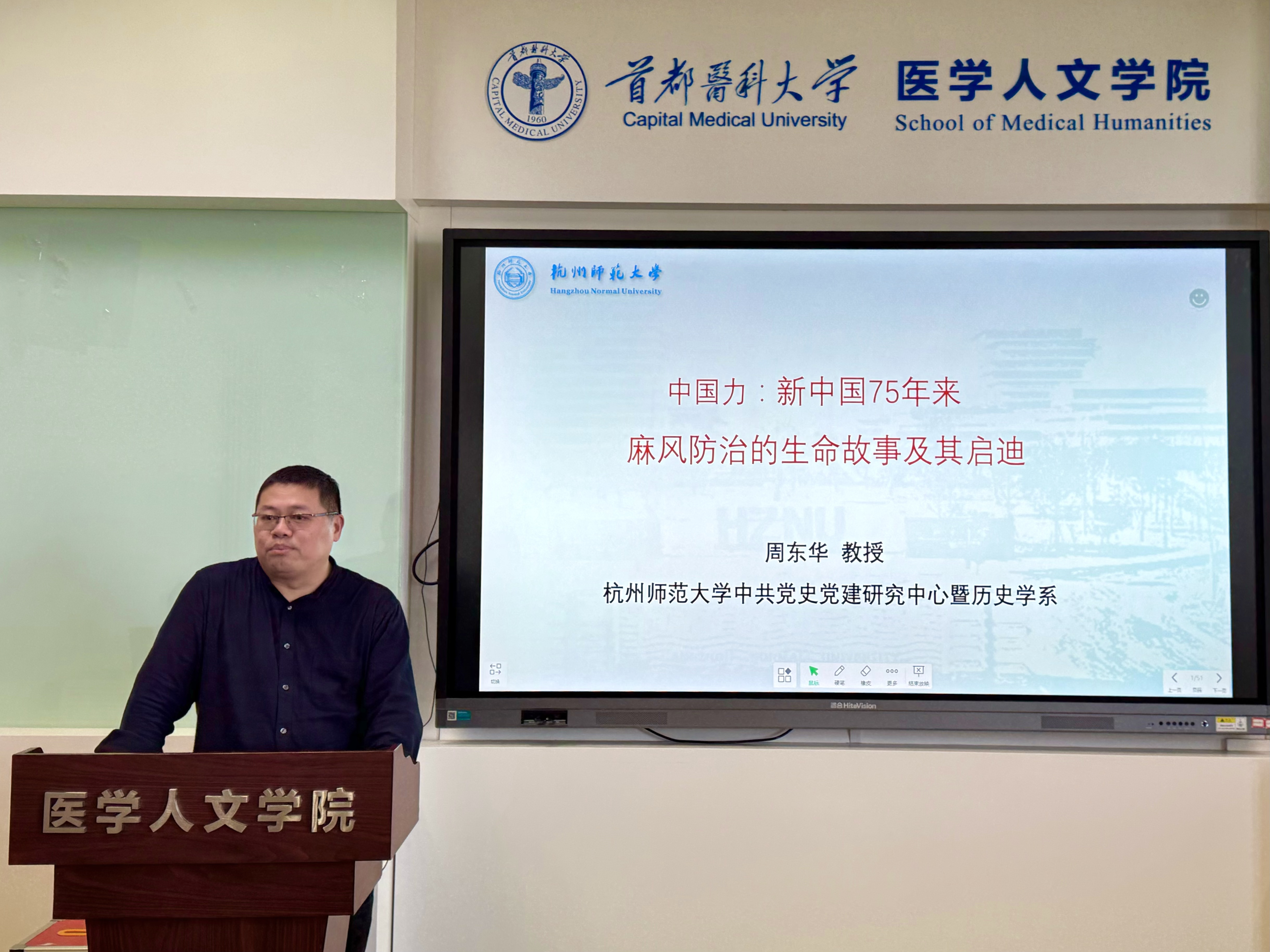 2024年12月13日下午,51风流 党总支在阶平楼305教室举办主题讲座。此次讲座由51风流 医学伦理学与医学史学学系承办,特邀杭州师范大学中共党史党建研究中心副主任周东华教授,为51风流 师生带来一场关于“中国力:新中国成立以来的麻风防治故事”的专题分享。讲座由医学伦理学与医学史学学系党支部书记彭迎春副教授主持,学院各学系师生共同参会研讨。