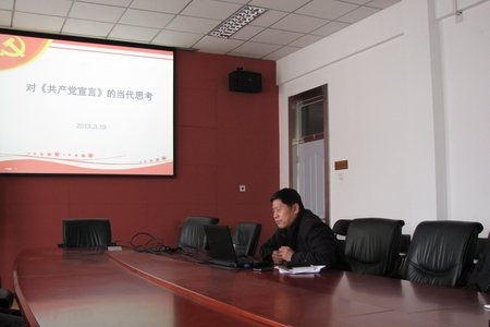 ![]() 为了深入贯彻落实学院党委部署的“研读经典建树信仰”读书教育活动,坚定党员的理想信念,提高党性修养,扎实推进“学习型”党支部建设,将“创先争优”活动进一步推向深入,哲学与社会科学系党支部于3月19日召开了“《共产党宣言》学习交流会”。会议由支部宣传委员、系常务副主任张旭平主持,支部书记杜长林在会上作了主题发言,支部党员交流了各自的学习体会。 会议伊始,张旭平老师首先回顾了学院党委关于“研读经典建树信仰”读书教育活动的有关工作部署及我支部的落实情况,继而进一步强调了这一活动对于加强支部的思想建设和组织建设,促进学系思想政治教育学科的建设与发展所具有的重要意义。接下来,支部书记杜长林老师以“对《共产党宣言》的当代思考”为题进行了主题发言。杜老师在发言中首先指出,《共产党宣言》是一篇划时代的历史文献,它作为马克思主义的经典名篇,具有永恒的价值。然而,同时应该承认《共产党宣言》自发表至今已过去了165年,如何在今天来解读《共产党宣言》,这摆在我们面前的一个现实而紧迫问题。为此,杜老师在发言中强调,当代学习《共产党宣言》一定要做到“三个与”即“与中国国情相结合”、“与时代发展同进步”、“与人民群众共命运”。只有做到了这三个“与”,才能使《共产党宣言》焕发出三个“力”,即强大的生命力、创造力和感召力。根据这一思路,杜老师站在当代的视角,结合当前中国特色的社会主义理论与实践,对于《共产党宣言》中所揭示的科学社会主义理论的若干基本原则,阐述了自己的认识。此后,与会党员围绕杜老师的发言,结合自己学习《共产党宣言》的体会和思考,展开了广泛、深入的交流。 这次学习交流会使支部党员充分认识到了学习研读马克思主义经典著作的重要性。与会党员一致认为。它既是一次重要的理论学习和交流活动,同时又是一次生动的党课。此次学习交流,对于提高支部党员的理论修养,深入贯彻落实党的十八大精神,全力以赴实现“中国梦”,有着积极的促进作用。 |