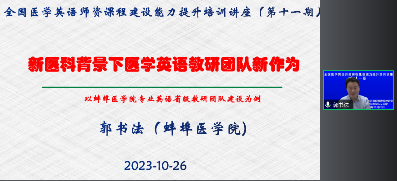 全国医学英语课程群虚拟教研室举办全国医学英语师资课程建设能力提升培训讲座