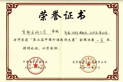 卫生管理与教育学院应用语言学系微课团队参赛的两部微课作品“World of Medical Terminology-Pancreas”和“Medical Terms Anatomy”凭借清晰的教学思路、独到的课程设计、生动的图文编排、流畅的口语展示、良好的教学效果获得了评委们的一致好评,战胜了全国各路强手,分获全国特等奖和一等奖,载誉而归。