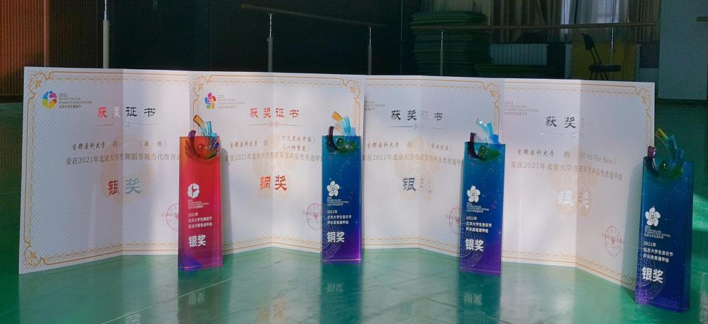 共揽获3银1铜 据悉,2021年北京市大学生艺术系列活动自2021年9月启动以来,共收到来自55所高校报送的369件作品。活动旨在全面贯彻党的教育方针,充分展示北京高校美育成果,丰富高校学生的校园生活。