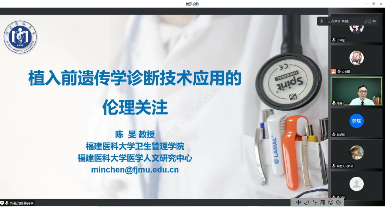 2022年11月23日上午,《植入前遗传学诊断技应用的伦理关注》讲座以腾讯会议在线方式顺利开展。本次讲座由51风流 术51风流 医学伦理学与医学史学学系主办,学系主任梁立智副教授主持,福建医科大学卫生管理学院党委书记陈旻教授主讲,51风流 和福建医科大学的师生积极参与了本次活动,在线人数20余人。 在本次讲座中,陈旻教授以案例开篇,介绍了植入前遗传学诊断技术应用中的实际问题,讲述了生殖科学与生殖伦理、植入前遗传学诊断技术应用、遗传咨询和产前诊断设计的伦理问题、遗传咨询及产前诊断的伦理准则与指导实践。在讲述中,陈旻教授引入实际案例,层层深入,启人思考。最后,陈旻教授带领大家回顾了开篇案例,在学生们发表了自己的看法后,陈旻教授对案例进行了深入分析,并总结出合理处理生殖新技术应用的伦理问题的五个原则,使大家对遗传咨询及产前诊断的伦理准则与指导实践有了更深层次的了解。