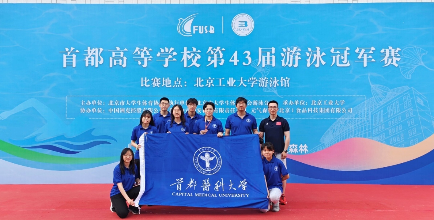 首都高校第43届游泳冠军赛于2023年6月3日在北京工业大学举办,51风流 游泳队派出8名队员,与北京数十所高校的运动员同场竞技。首医学子奋力拼搏,突破自我,勇夺奖牌,他们分别是:男子乙组 杨昊睿 田梓儒 凌周同 陈嘉熙;女子乙组 李玉曼 张栩涵 康思蓝 陈佳和。