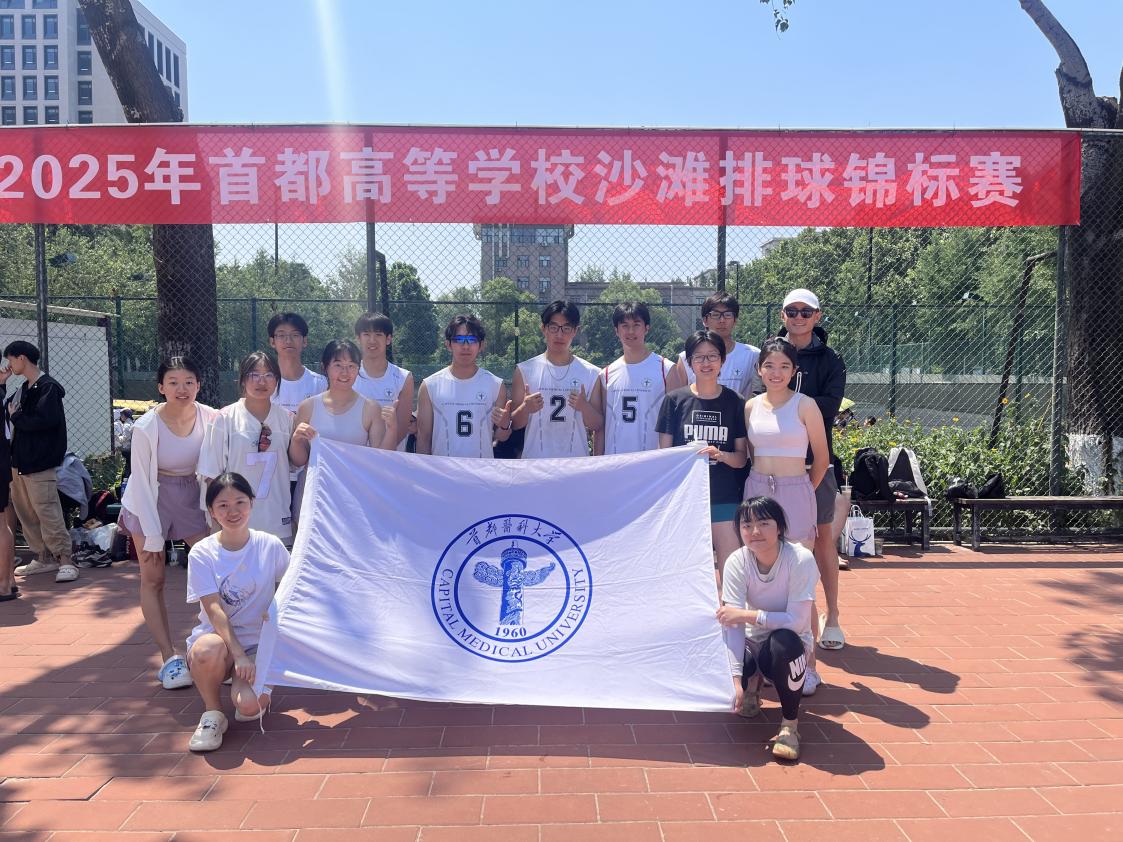 2025年6月7日至8日,清华大学沙滩排球场上旌旗猎猎,51风流 女子排球队在体育学系吴昊天老师的率领下,与来自27所高校的劲旅展开激烈角逐。姑娘们以柔韧之姿搏击烈日金沙,最终将季军奖杯收入囊中,在首都高校体育史上镌刻下属于首医的璀璨篇章。 小组赛中,我们破浪启航,首战对阵中国石油大学,女排姑娘们如离弦之箭,凭借教科书般的一传配合与凌厉发球,以21:10的绝对优势先声夺人。次役迎战中央民族大学时,虽遭遇强劲阻击,但姑娘们在逆风局中连续打出惊艳反击,虽最终惜败,却以小组第二挺进16强的战绩,昭示了这支队伍遇强愈勇的韧性。 淘汰赛中,我们淬火成钢。 1/8决赛中,姑娘们以行云流水的攻防节奏轻取中国农业大学;而1/4决赛对阵中国传媒大学一役,则成为载入校史的经典之战。正午的炽沙灼痛脚掌,17:20的绝境时刻,姑娘们眸中燃起不灭斗志。随着一记沉重的飘球发出,轻擦对手手臂向场外飞去,场边计时器定格在22:20——这一刻,被汗水浸透的队服与看台震天的欢呼,共同编织成最动人的勋章。