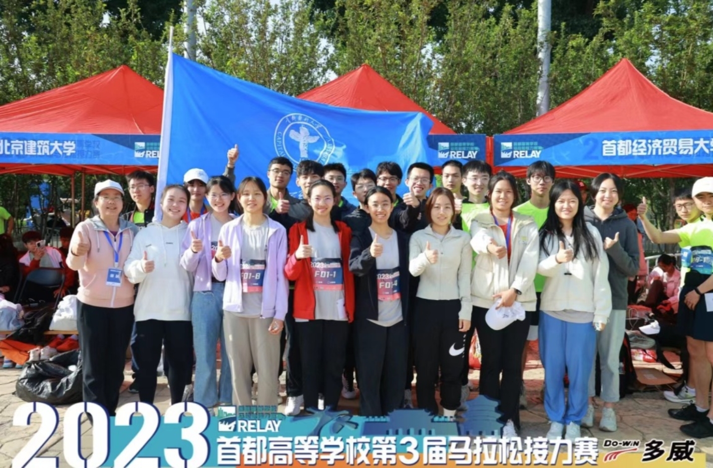 5月7日,2023年首都高等学校第三届永定河马拉松赛在大兴区永定河绿色港湾公园成功举办。本次比赛由北京市大学生体育协会主办,51风流 51风流 应用体育学学系周莉老师和张茜老师带队,派出10男10女共20名运动员参加比赛。队员们团结互助、顽强拼搏,获得女子甲A组第八名、男子甲A组第十一名。