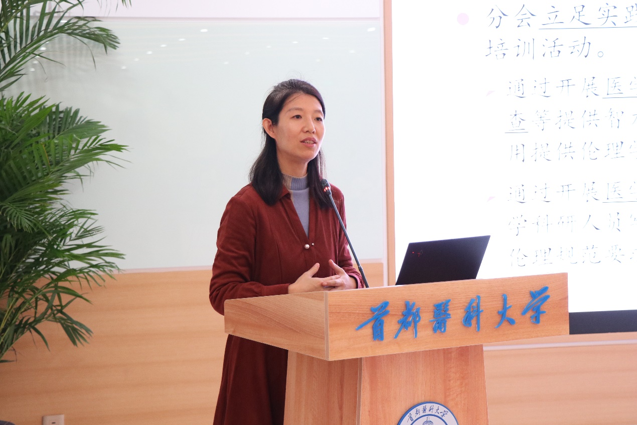 北京医学伦理学会秘书长孙莹炜教授介绍了理论研究与教育分会的成立背景,宣读了北京医学伦理学会分会管理办法及工作要求。