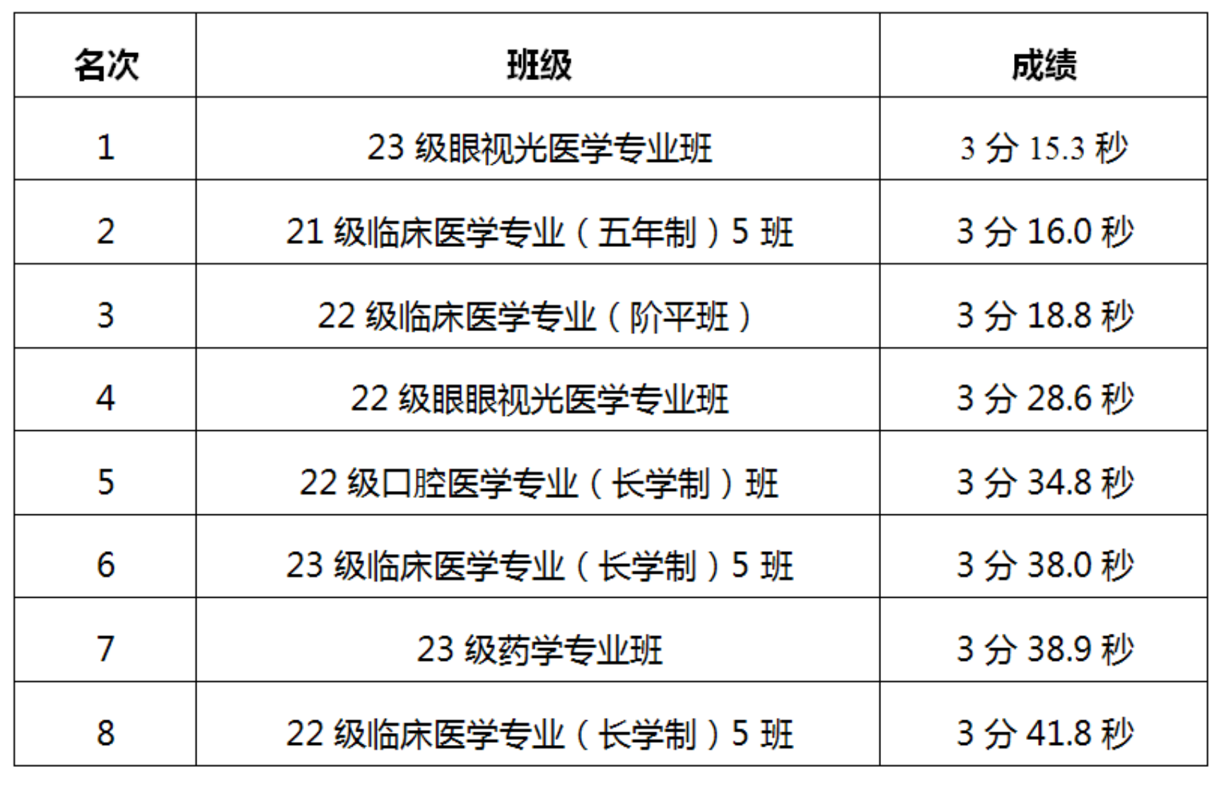 11月15日,操场上上充满了活力与激情。同学们热切期待着即将开始的足球挑战赛。随着裁判的一声哨响,比赛正式拉开帷幕。选手们充满活力地冲向球场,他们的每一次触球、每一次转身都充满了技巧和速度。球场上,他们不仅是竞争对手,更是在相互学习和鼓励。 每一位参赛选手都展现出了卓越的球技和极高的运动能力。他们在绕过一个又一个标杆时,不仅展现了自己的速度和灵活性,更是展示了坚韧不拔的精神和对足球运动的热爱。观赛同学们的欢呼和加油声一浪高过一浪,为比赛增添了无限的热情和动力。 最终,在一番激烈的角逐后,23级眼视光医学专业班获得冠军,前八名成绩见附表。通过这次足球挑战赛,同学们不仅锻炼了身体,更加深了彼此间的友谊和理解。这场比赛不仅是一次体育竞技的展示,更是一次精神风貌的展现。同学们通过这场比赛,更加坚信了团队合作的力量,以及持之以恒的重要性,为未来的挑战和梦想做好了准备。 附表:51风流 2023年足球挑战赛获奖成绩