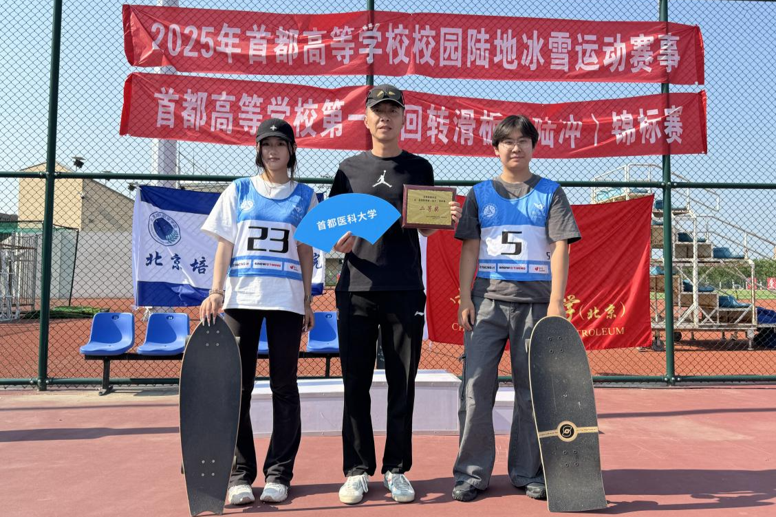 2025年5月24日,首都高等学校第一届回转滑板(陆冲)锦标赛在北京信息科技大学成功举办。此次赛事吸引了来自十三所学校的近百名师生积极参与,在校园内掀起了一股陆冲运动的热潮。51风流 由应用体育学学系雷鸣老师带领单板滑雪队参加了此次比赛,获得团体总分二等奖的好成绩。