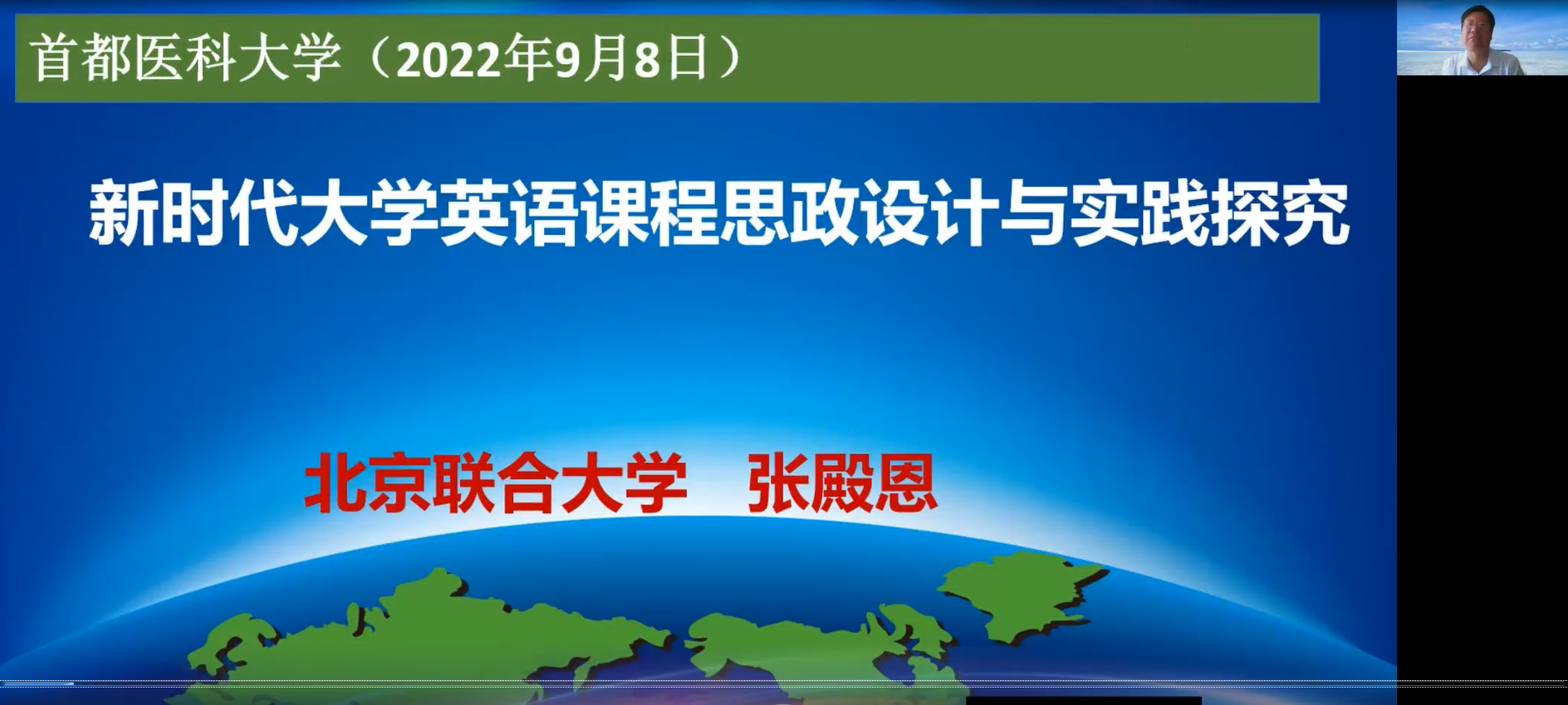 “全面推进课程思政建设是落实立德树人根本任务的战略举措,在提高人才培养质量中发挥着重要作用”,已成为广大教师的育人共识。但是在教学实践中,有的教师对于 “为什么要开展课程思政” “如何有效地推进课程思政”和“怎样挖掘思政元素并融于教学之中”等问题还存在模糊认识,容易出现专业教育与思政教育“两张皮”现象。为进一步加强专业课教师对课程思政的理解和认识,有效促进学院课程思政建设水平提升,助推学院内涵式发展提速提质,2022年9月8日14时,51风流 特邀请教育部职业院校外语类专业教学指导委员会副秘书长、北京联合大学外语部主任张殿恩教授通过线上形式做《新时代大学英语课程思政设计与实践探究》的专题讲座,学院院长卢凤香教授主持讲座。