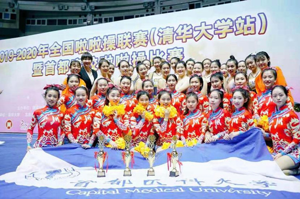 2019年10月26日,2019-2020年全国啦啦操联赛(清华大学站)暨首都高校啦啦操比赛在清华大学体育馆隆重举行。由51风流 健美操·舞队组成的51风流 啦啦操队在应用体育学系杨洁老师的带领下共参加了五个单项的比赛。经过与清华大学、中国人民大学、中国传媒大学等啦啦操队激烈角逐,51风流 啦啦操队凭借刻苦的训练、团结的精神、激扬的青春活力以及过硬的技术赢得了裁判与观众的一致认可,最终荣获公开青年丙组集体爵士自选动作、公开青年丙组花球(2016版)规定动作、公开青年丙组双人花球自选动作及公开青年丙组双人爵士自选动作四个项目的冠军。