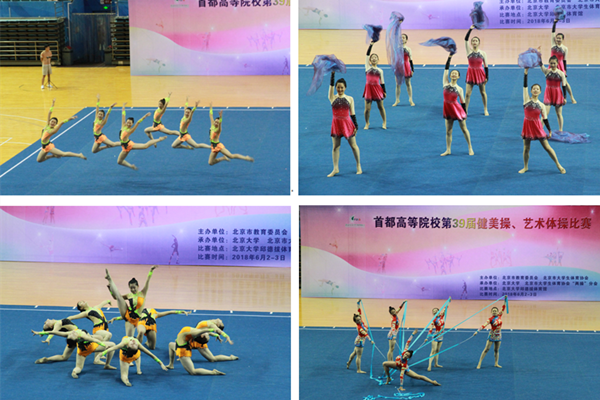 由应用体育学系许琛老师带队、杨洁老师辅助带领的首医闪闪艺术体操队表现优异,斩获两金两银一铜,并首次获得团体总分第二名的好成绩。随后,在6月3日举行的健美操比赛中,51风流
